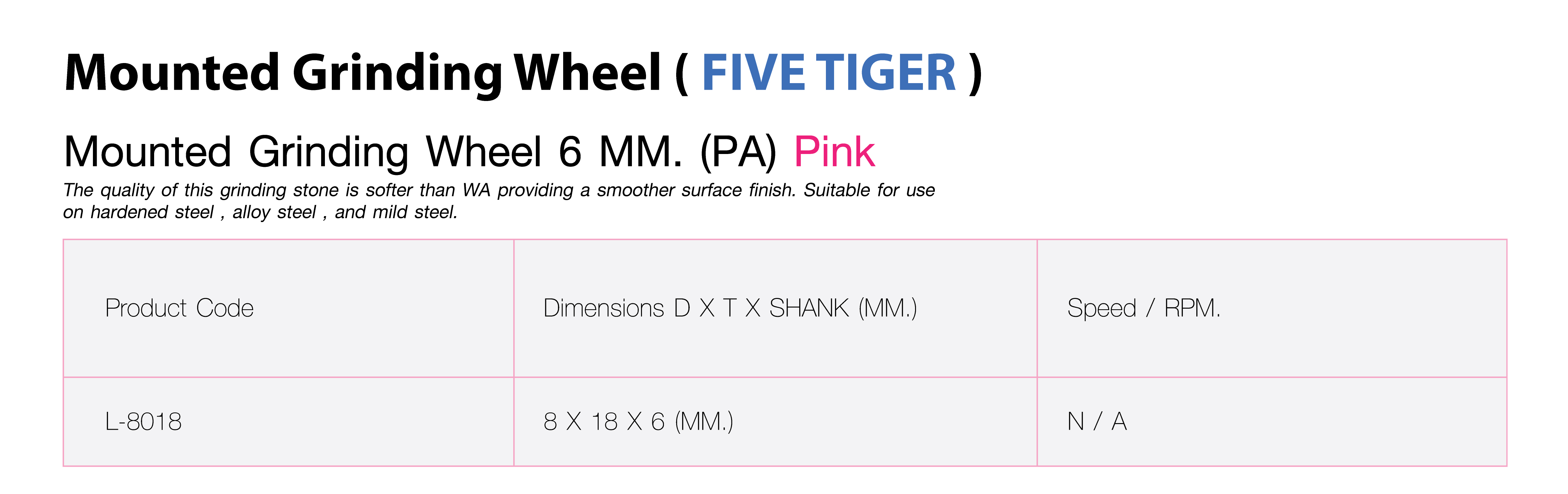 Categories : Mounted Grinding Wheel 6 MM (FIVE TIGER) ,